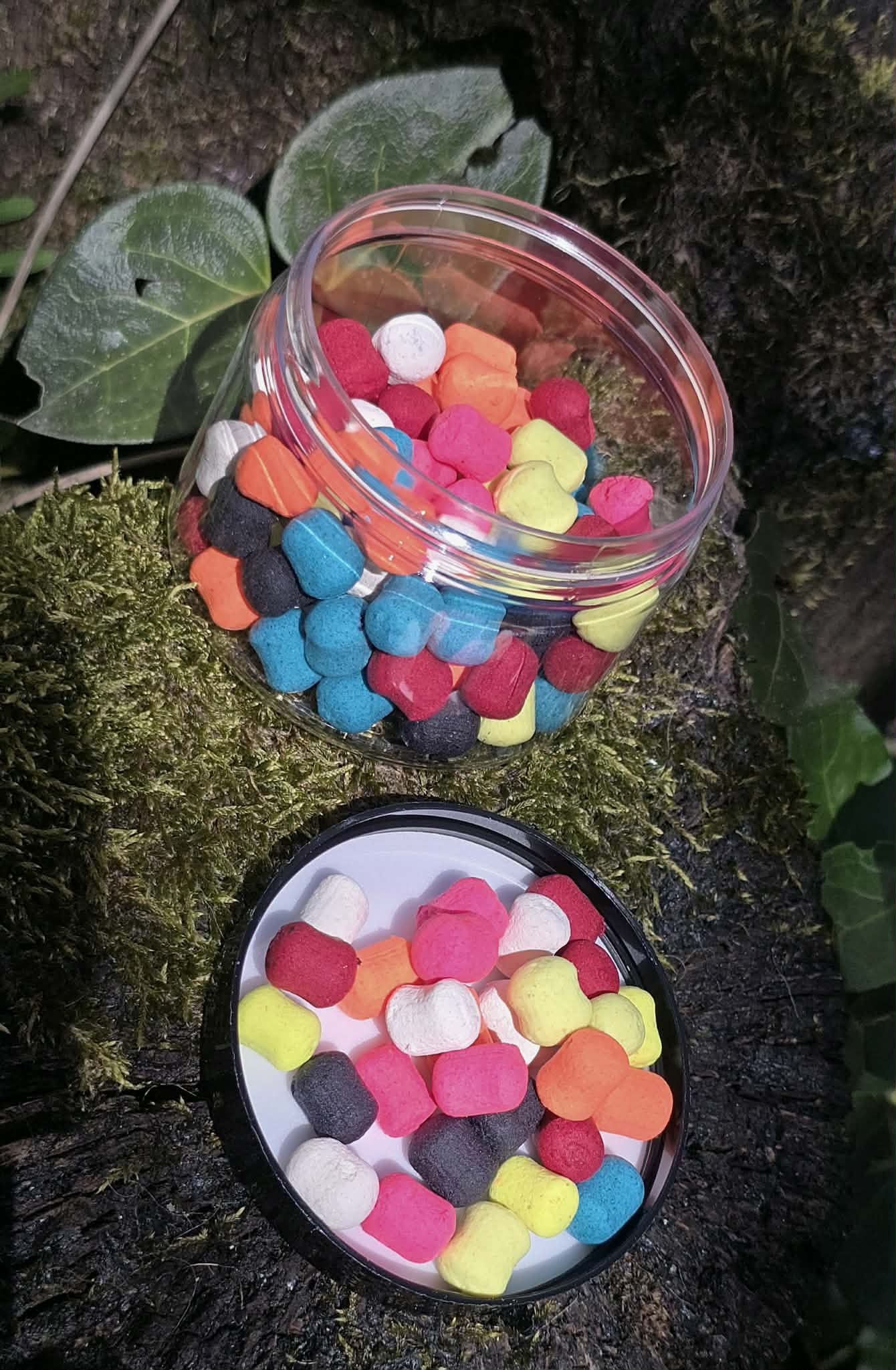 Réalisés avec notre mix ULTRA FLOTTANT, nos dumbles de 8x12mm sont particulièrement adaptés à la pêche au ZIG mais peuvent parfaitement accompagner une bille pour l'équilibrer (pour rappel, nous avons testé un de nos pop-up de 16mm sur une bille de 16mm... Il l'a montée à la surface plusieurs heures ! jusqu'à ce que la bille se gorge d'eau et s'alourdisse...)